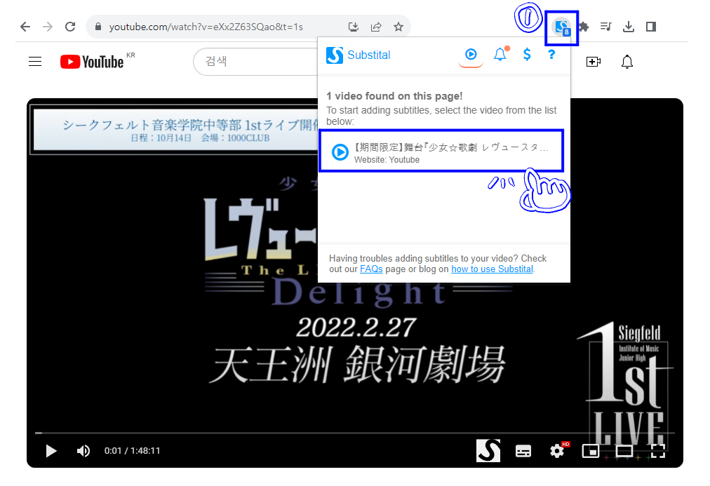 ํฌ๋กฌ๊ณผ ํ์ด์ดํญ์ค์ฉ ํ์ฅ ํ๋ก๊ทธ๋จ์ธ 'Substital: Add subtitles to videos and movies' ์ ์ฌ์ฉํ ์ ํ๋ธ ์๋ง ์ ์ฉ๋ฒ์ ๋ํด ์ค๋ช ํฉ๋๋ค. ๋ณธ ๊ฒ์๋ฌผ์ ํฌ๋กฌ ์ฌ์ฉ์ ์์ ํ ๊ฒ์๋ฌผ์ ๋๋ค.
